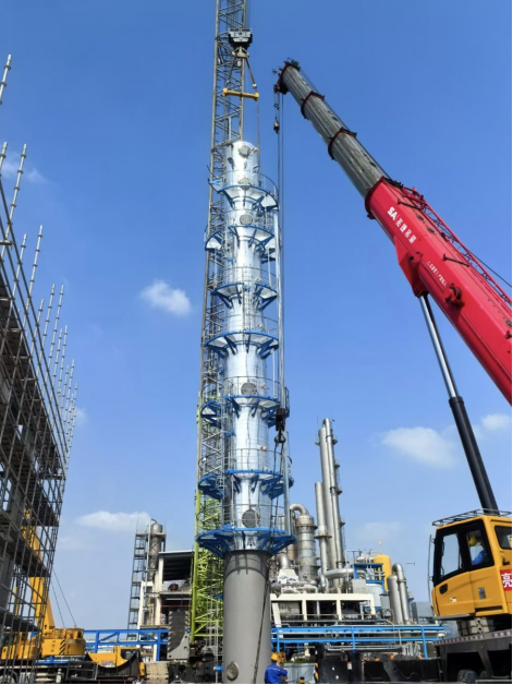 公司衛(wèi)星石化項目完成首臺核心設(shè)備吊裝